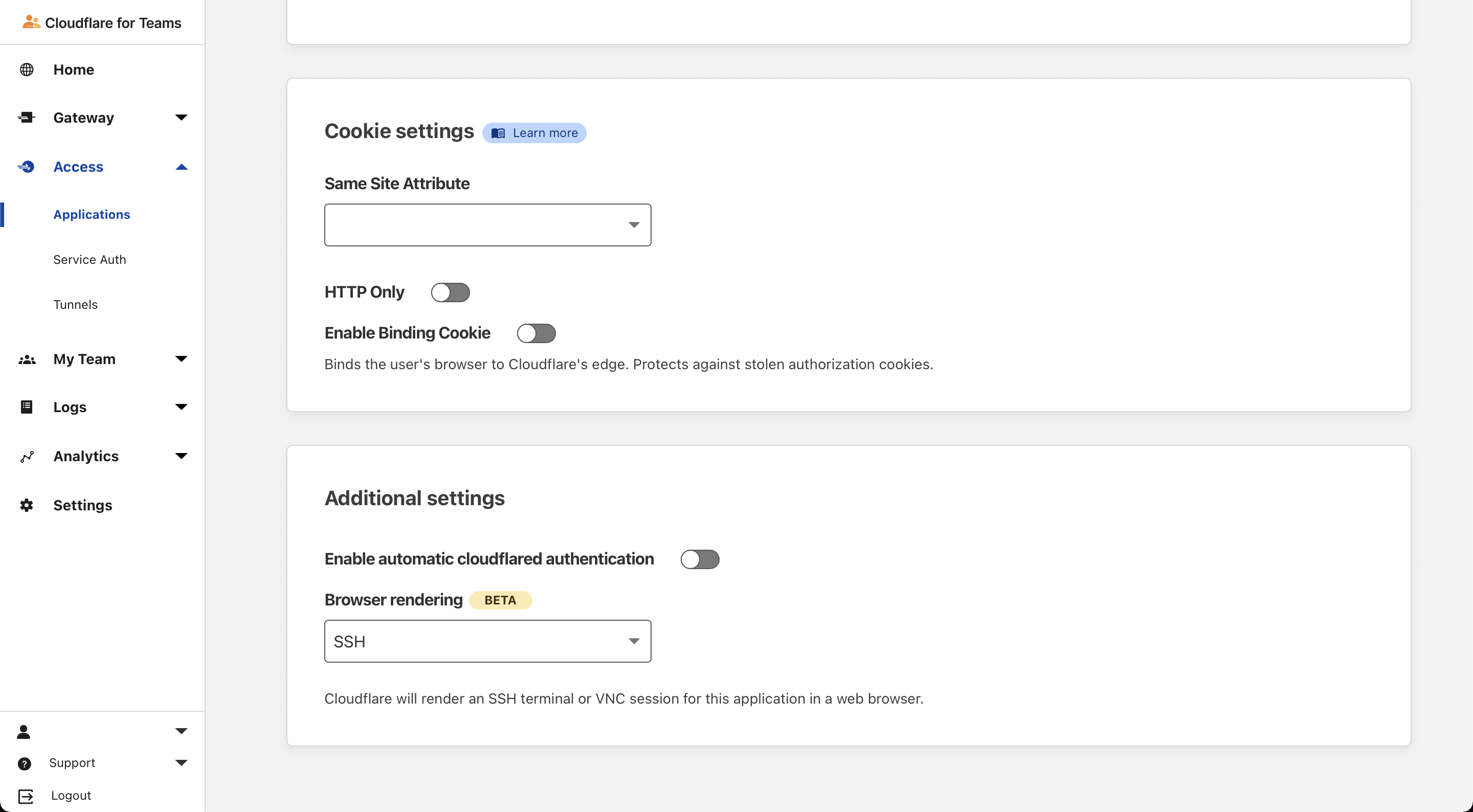 Sidenote: You can enable browser rendering for SSH but we'll leave that disabled for this.
