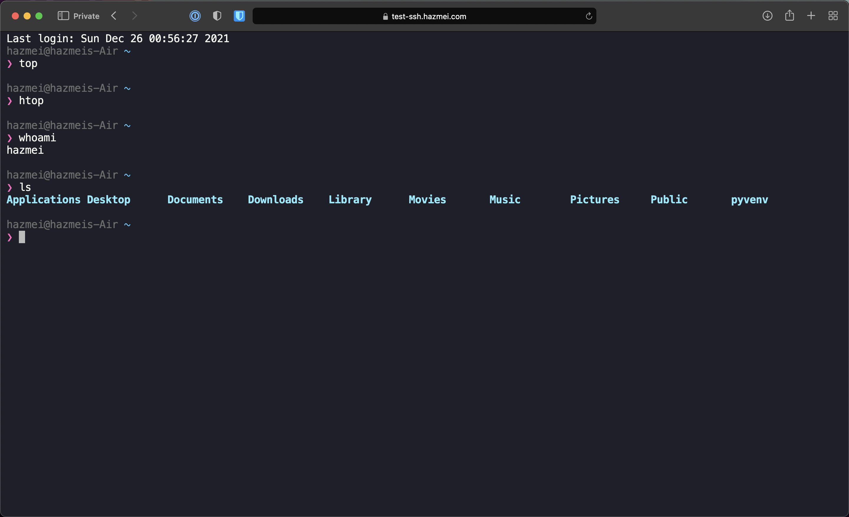 Go to the application domain (in this case, it's https://test-ssh.hazmei.com)
