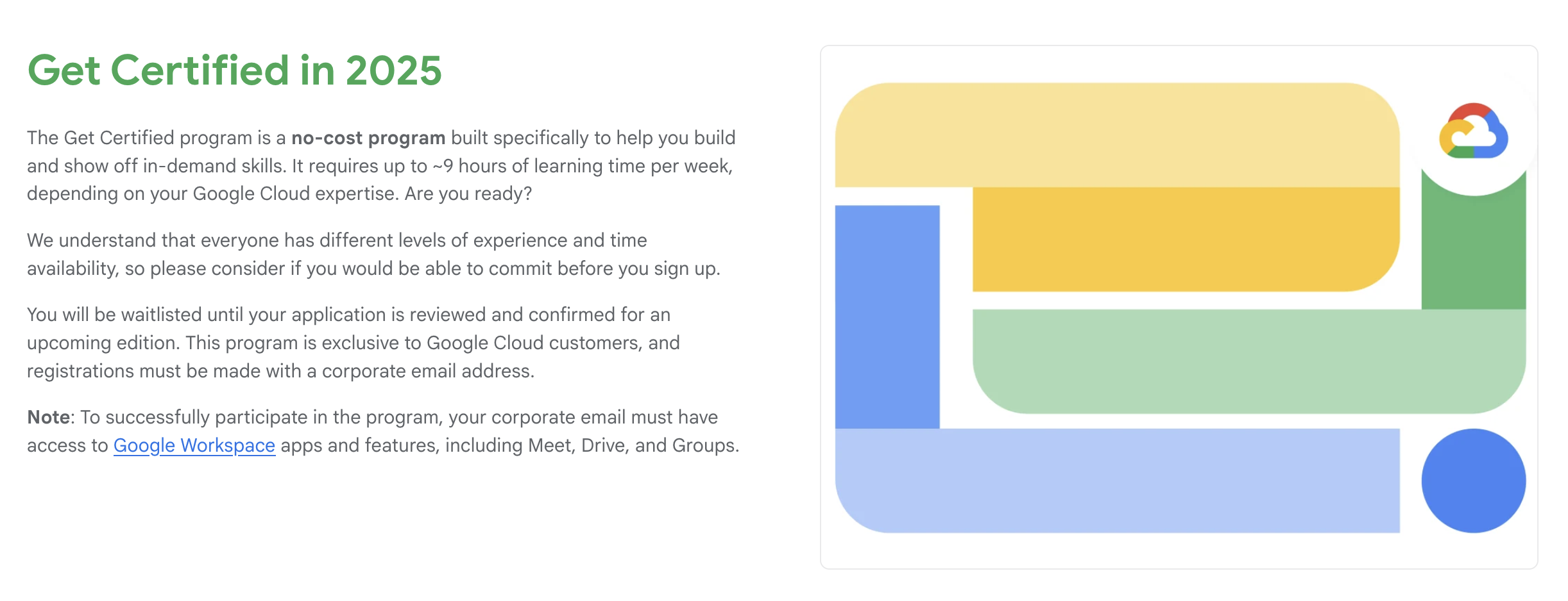 The decision to take the certification exam started from the Google Get Certified Program. This is a guided 8 weeks learning journey program from Google with access to dedicated trainers and Google Cloud Skills Boost credits.